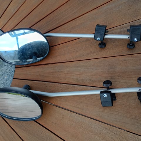 Det ultimative campingspejl. 2 x venstre- og 1 x højre campingspejle. Passer til alle bilmodeller. Sælges kun samlet.