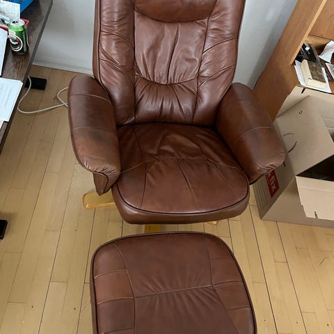 Et stk. Skalma. læderlænestole af dansk kvalitet med rigtig god siddekomfort kan dreje. Den er i rigtig god stand har stået til pynt i stue 2 så brugt meget lidt. Ny pris 15.000 kr. sælges for kun 2.000 kr. Tlf 40742594