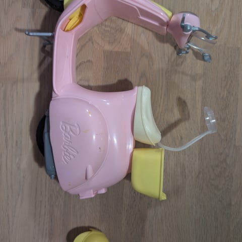 Giv Barbie muligheden for at suse afsted med stil på denne ikoniske Vespa! Med sit gennemførte retro-look, de karakteristiske gule hjul og det lyserøde sæde, er den en sikker vinder til både leg og udstilling i dukkeverdenen.