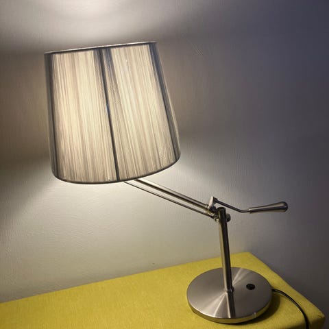 i fin stand, hvid, højde 63 cm, giver flot lys i rummet