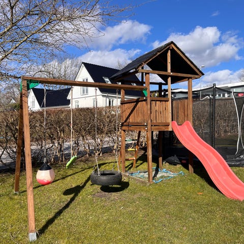 Jungle Gym rutsjebane i grå plast med en længde på 220 cm og en bredde på 49 cm. Rutsjebanen er fremstillet i UV-beskyttet plastmateriale. Maksimal brugervægt er 50 kg. Velegnet til montering på Jungle Gym legetårne og gyngestativer med en platformshøjde op til ca. 125 cm og kan tilsluttes vandslange for brug som vandrutsjebane.