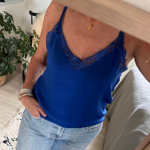 Brugt få gange - er blevet lagt ind så den er smallere foroven/mere faconsyet end originalt (livvidde er 67 cm) - har lynlås i siden.