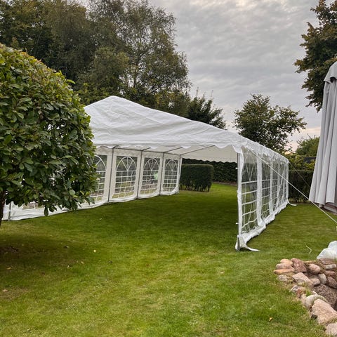 4 år gammelt festtelt fra Teltpartner med (ekstra) 2.6 meter sidehøjde. Brugt 4 gange og opbevaret tørt. Der er vinduer i den ene gavl (tilkøb). Kraftig dug som er i pæn stand. Ingen skader. Opstilles 4. og sidste gang her i perioden ~ 17. April - 2. maj hvor den kan besigtes og skal sælges herefter.