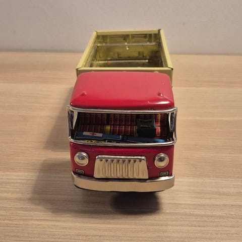 Materiale: Karosseri af metal (plademetal) med original grafik; chassis og hjul af massiv plastik.