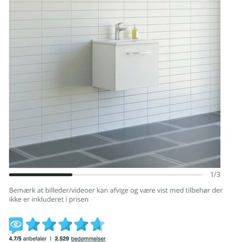 Mål på skabet er 80 x 44 x 57 (bxdxh). Vasken er typen Solid Surface.