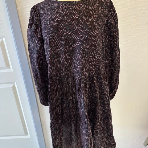 Hverdagskjole i brun bomuld til dame i størrelse M. Kjolen har lange ærmer og gennemgående knaplukning foran. Klassisk skjortekrave og enkelt snit, der egner sig til hverdagsbrug. Materialet er bomuld, som giver en blød og behagelig fornemmelse. Velegnet alene eller sammen med leggings eller strømpebukser.