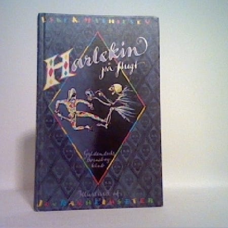 Harlekin på flugt, Eske Kaufmann Mathiesen f.1944, Gyldendals børnebogklub 1988. 93 sider, illustreret i brunt/hvidt af Jon Ranheimsæter, indbundet, som ny. Sender gerne