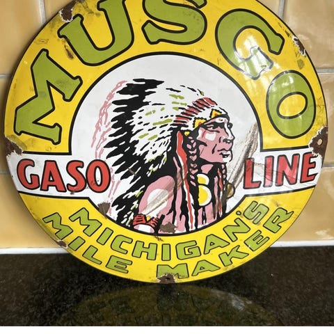 Gulf Gasoline emaljeskilt. Velegnet som dekoration i garage, værksted eller samling af olierelaterede emner.