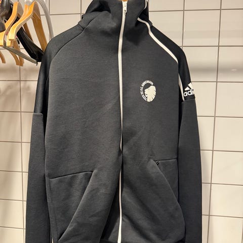 F.C. København hættetrøje i hvid. Trøjen har kængurulomme på fronten og stort FCK-logo med grafisk mønster på brystet. Klassisk hætte med snøre og ribkanter.