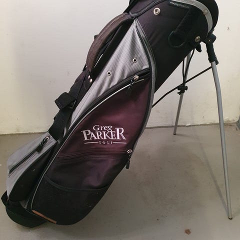 Stort set ubrugt bærebag, sælges eventuelt med de assorterede jern der ses på billedet.