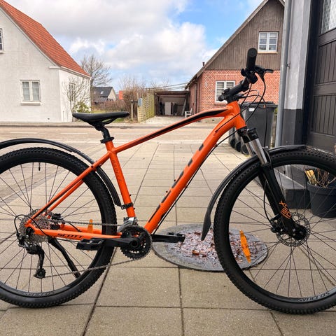Scott Aspect 910 mountainbike købt i 2016 - Har altid stået inde, så i rigtig god stand, dog lidt overfladisk rust på forgaffel. Alt virker som det skal. Brugt meget lidt de sidste 5 år.
