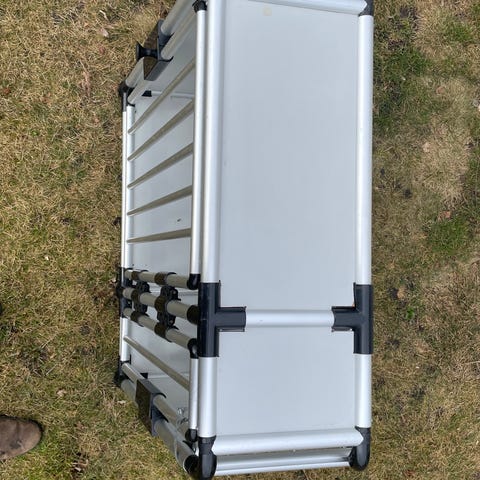Måler 74 cm i længden, 50 cm i bredden og 62 cm i højde. Ok stand og fuldt funktionel. Hængsler er rustne efter det har stået ude.
