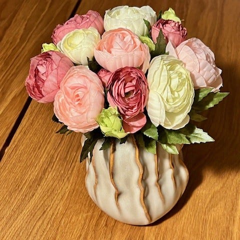 Der er tre huller til at sætte blomster, grene m.m. ned i. To på den ene side og én på den anden.