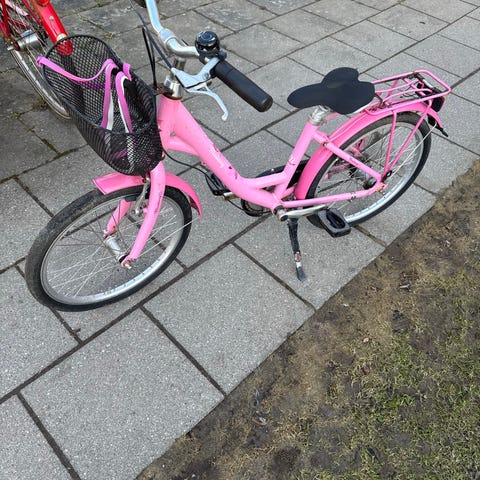 Mustang børnecykel med 20" hjul i lyseblå farve i meget god stand. Der er kædeskærm, skærme over begge hjul samt reflekser i hjulene. Sadel og styr kan justeres i højden, så cyklen kan tilpasses barnets størrelse. Der er forsikrings godkendt lås.