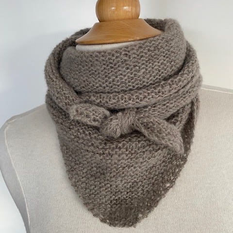 trekantet tørklæde håndstrikket i Alpaca, Merino uld og Silke
