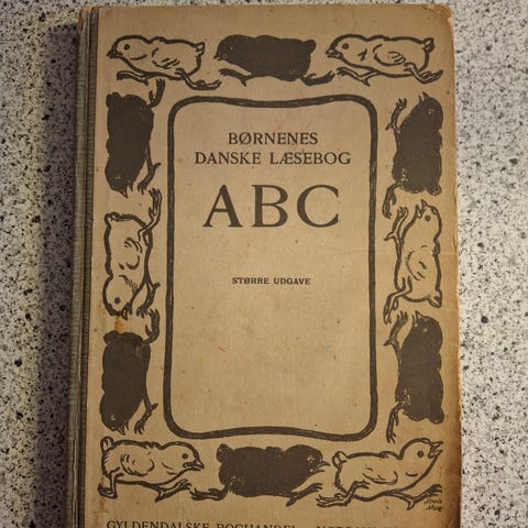 Børnenes danske Læsebog ABC, Louis Moe m.fl., emne: litteraturhistorie, Denne gamle skolebog fra 1930erne er storartet til at mindes barndommen og formidle til ældre for at få en god snak i gang.