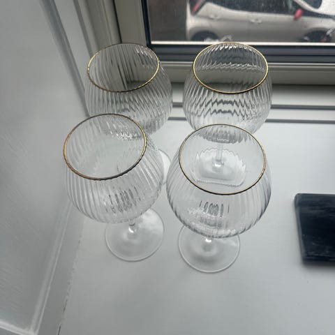 Et af glassene er limet i foden, da det er gået i stykker.