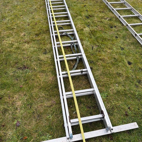 Wibe stige i aluminium med hjul og rygningsbøjle i den ene ende. 6 meter.