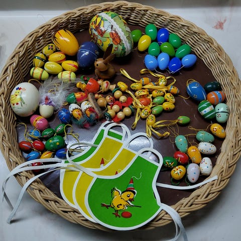 7 stk retro påske æg med crepepapir motiver