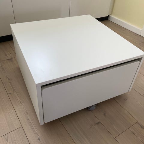 IKEA model SLÄKT, hvid. 2 stk. Supergodt system med udtrækkelige skuffer. Rigtig pæn stand. Rummelige med hjul. Mål 61x61x30 cm. Overfladen er glat og egnet som ekstra afsætningsområde/lavt bord. Velegnet til opbevaring af legetøj, tøj, sko mv. Sælges samlet for 300 i alt for begge møbler. Sælges også enkeltvis til 200/stk.