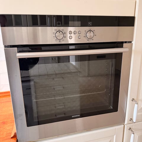 Siemens HB78GU570 varmluftsovn til indbygning. Ovnen har varmluft med ventilator bagerst i ovnrummet. Front i rustfrit stål med glaslåge og drejeknapbetjening. Indvendigt ovnrum med flere rilleniveauer til bageplader og riste. Leveres med bageplade og rist som vist på billederne. Tilslutning via fast el-kabel bagpå ovnen. Velegnet som indbygningsovn i køkkenmodul, hvor der ønskes varmluftsfunktion.