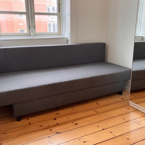 Komfortabel sovesofa med opbevaring – næsten ikke brugt