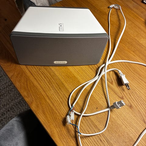 Sorte wifi-højttalere inkl. hvidt kabel og sort vægophæng. Virker som de skal. Femstår pæne og uden brugsspor. Kan opsættes til at spille som stereopar. Kan betjenes via knapper på højttaleren, samt via Sonos app. Sælges som sæt.. Afhentes og betales via MobilePay.