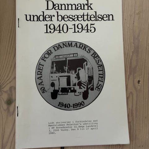 Hæfte med titlen "Danmark under besættelsen 1940-1945". Forsiden viser et emblem med teksten "50 året for Danmarks besættelse 1940-1990". Publikationen omhandler perioden under den tyske besættelse af Danmark og er velegnet som historisk materiale til læsning eller reference om besættelsestiden. Trykt som hæfte med hæftede sider.