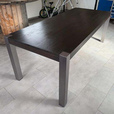 Stort spisebord i massivt egetræ måler 200x100 uden tillægsplader.