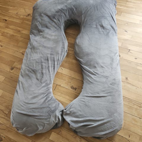 Fin graviditetspude / ammepude i beige med hvide stoppere. Har brug for en vask.