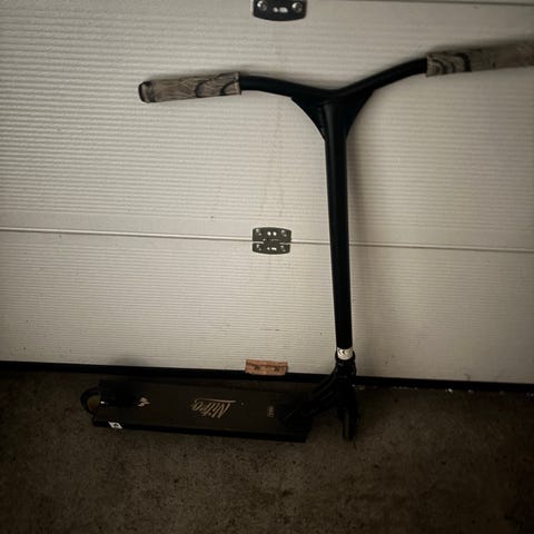 Det er med dirt hjul altså til alt slags underlag. Måler 82cm fra stå plade til styret..