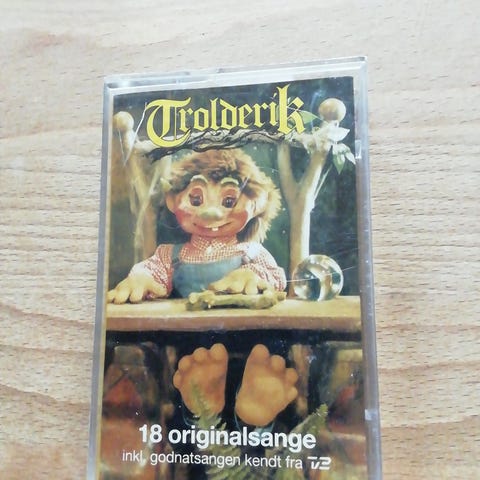 Trolderik kassettebånd med 18 originalsange kendt fra tv. Indeholder blandt andet Falck-Klub Sangen samt en række andre Trolderik-sange fordelt på side 1 og side 2. Fysisk musikbånd i kassetteformat med originalt omslag og sangliste trykt på indlægget.