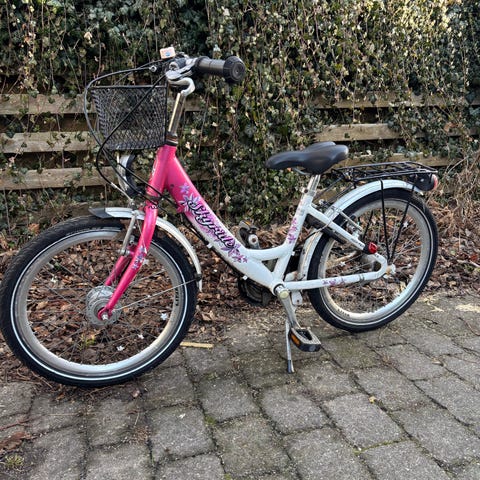 Alt fungerer som det skal – dynamolygter virker, og cyklen har eftermonteret lås og cykelkurv, hvilket gør den perfekt til skole eller fritidsaktiviteter.