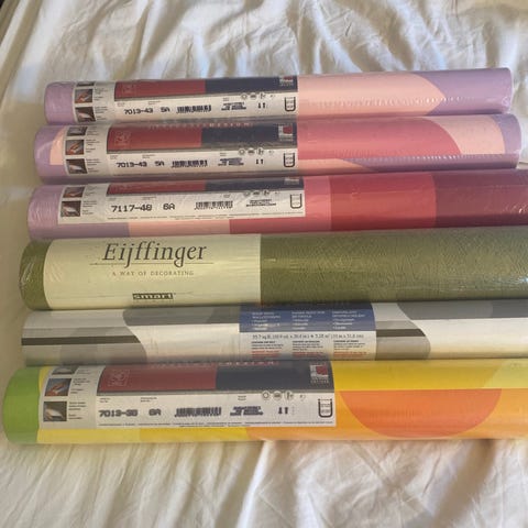 7 ruller Superfresco Easy tapet med cirkelmønster i hvid. Tapetet har et grafisk mønster af overlappende cirkler.