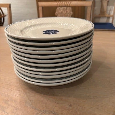 Bing & Grøndahl blev grundlagt i København i 1853 og er i dag en del af Royal Copenhagen. Tallerkenerne er produceret i midten af 1900-tallet.
