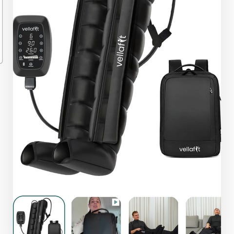Yourboots kompressionsstøvler med kontrolenhed og opbevaringstaske. Sættet omfatter elektronisk kontrolenhed med display og betjeningsknapper, fjernbetjening, kompressionsstøvler samt transport- og opbevaringstaske. Systemet er beregnet til benkompression og kan anvendes til restitution og afslapning. Strømtilslutning sker via kontrolenheden, som styrer trykniveauer og programmer i støvlerne. Manual medfølger ifølge billederne.