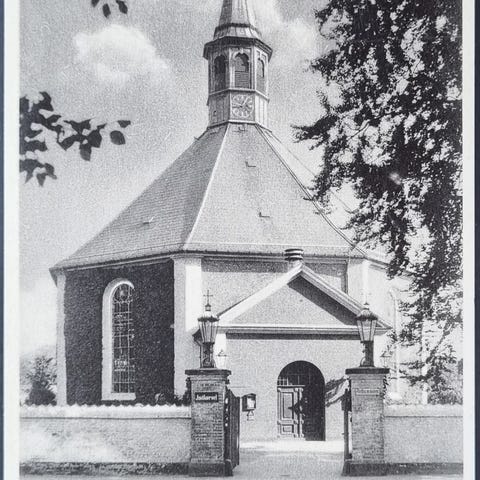Frederiksberg Kirke og Runddel med flere hestevogne i kø, samt sporvogn i 2 etager. Kirken er tegnet af den franske arkitekt Felix Dusart for den protestantiske menighed i Ny-Hollænderbyen og opført i perioden 1732–1734.