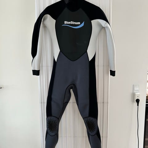 Waterhouse våddragt i størrelse M. Dragten er i neopren med lange ærmer og lange ben. Farvekombination i blå, sort og grå. Lynlås i ryggen for nem på- og afklædning. Velegnet til vandsport som f.eks. surfing, dykning eller andre aktiviteter i koldt vand, hvor der er behov for isolering og bevægelsesfrihed.