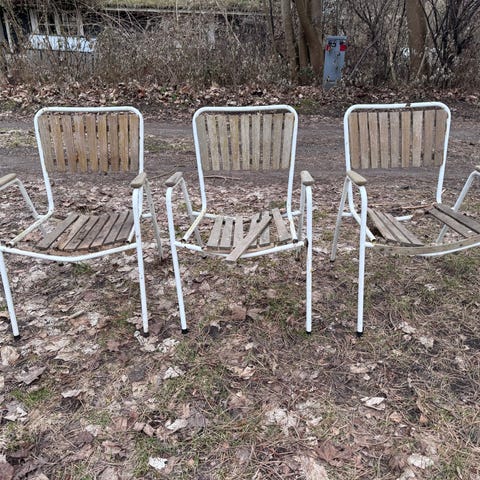 Det yderst eftertragtede Margueritte Havebordssæt med rundt bord og fire stole. Bordpladen er udført i trælameller monteret på en hvid metalramme. Stolene har sæde, ryg og armlæn i trælameller samt hvid metalstel. Sættet er egnet til udendørs brug på terrasse, altan eller i haven og giver siddeplads til fire personer omkring bordet.
