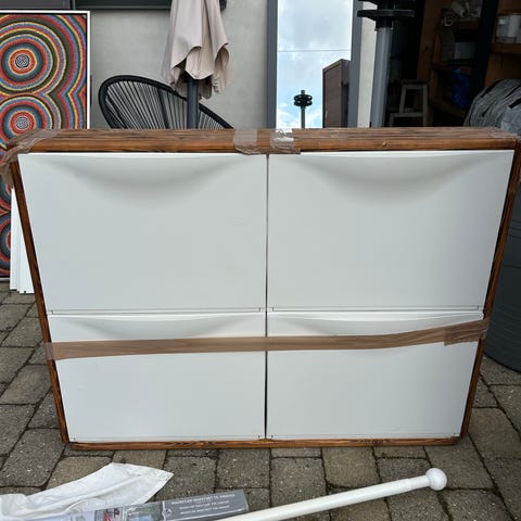 IKEA skænk med lamelfront i træ og hvid topplade