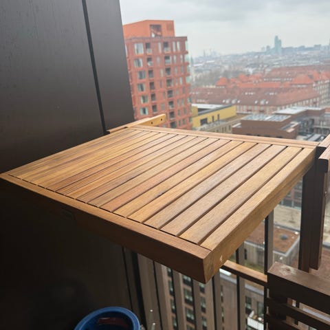 Sammenklappeligt altanbord i træ til gelænder
