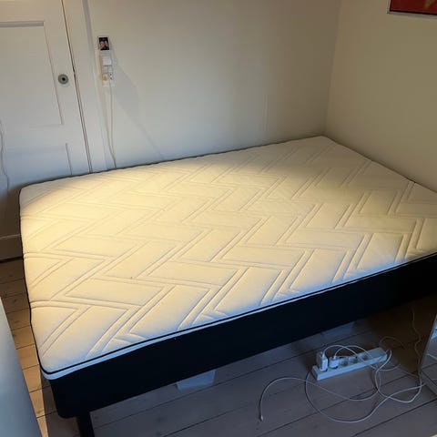 Velfungerende seng, med topmadras. Den er knækket under, men fungere stadig fint.