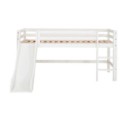 Mega fin Hoppekids ECO Luxury - Halvhøj Seng m. Rutsjebane - Skrå Stige - Hvid.