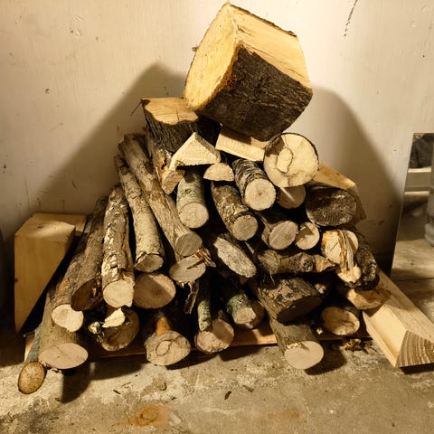 Primært affaldstræ. Omskåret på ca 30 cm samt 1 1/2 krm kløvet brænde
