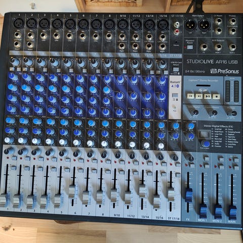 • Indgange: 12x XLR (mikrofon), 12x TRS-stik (linje) og fire RCA (linje)