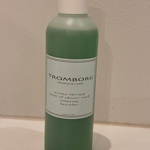Tromborg Aroma Therapy Bath & Shower Wash flydende sæbe til bad og brusebad. Produktet leveres i en pumpeflaske i ravfarvet plast. Velegnet til brug som kropssæbe i bad eller brusebad. 20th Anniversary udgave.