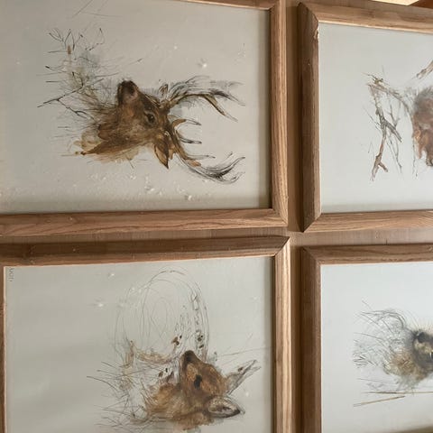 4stk billeder i træ ramme. Det ene er glasset revnet. Prisen er for alle 4 stk.