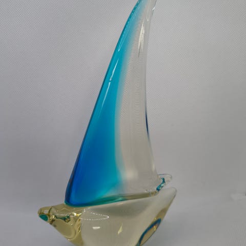 Lille fin glas gondol. L: 14 cm, B: 3,5 cm , H: 7 cm.