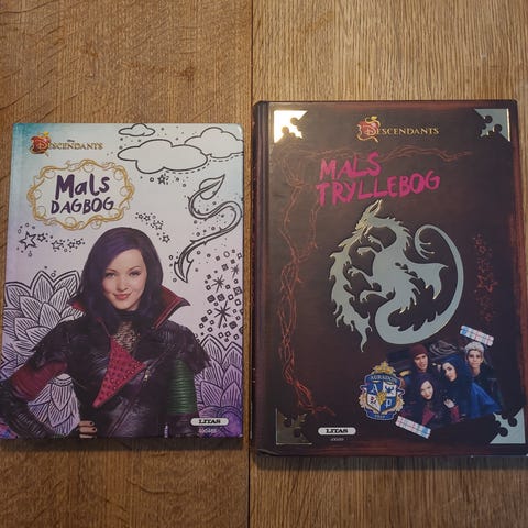 Disney Descendants Mals dagbog og Mals tryllebog bøger. Sættet består af to hardback-bøger med motiver fra Disney-serien Descendants. Bøgerne er illustrerede og indeholder tekst og grafiske elementer relateret til figuren Mal og universet omkring hende. Velegnet til læsning og som samlerobjekt for fans af Descendants.