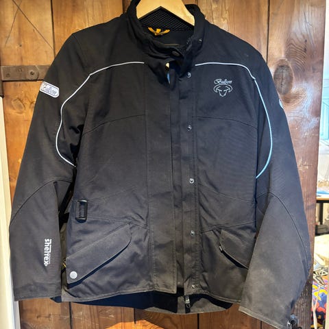 Bull-it MC jakke i størrelse large. Ydermateriale i 100 % bomuld med for i polyester. Jakken er sort og har flere udvendige og indvendige lommer samt lynlåslukning.